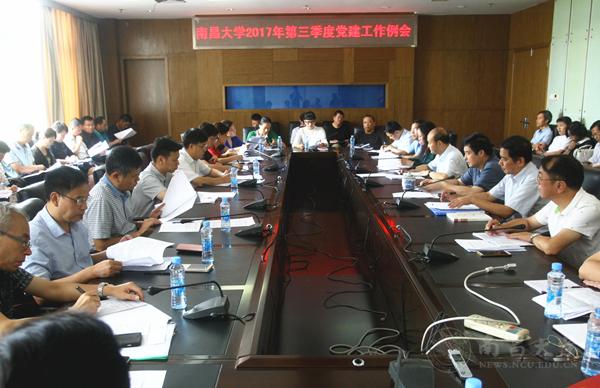9月21日上午,学校2017年第三季度党建工作例会、意识形态工作领导小组季度例会在办公楼第四会议室召开。校党委书记胡永新、党委副书记徐求真、党委组织部部长舒明出席会议。